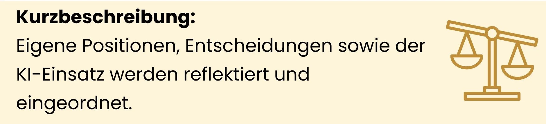 Beispiele: Stellungnahme, Positionierung, Bericht (mit Reflexion), SelbsteinschÀtzung, schriftliche KI-Reflexion