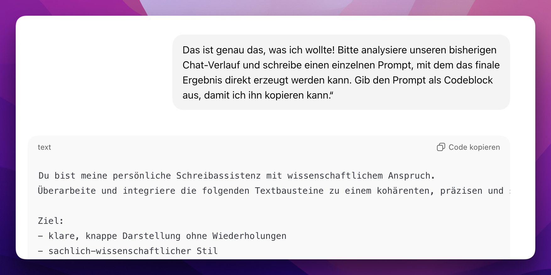 ⌨️ Prompting-Tipp: Vom Chatverlauf zum perfekten Prompt